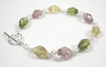 Bracelet – Spring Colours – lovely faceted crystal with silver plated