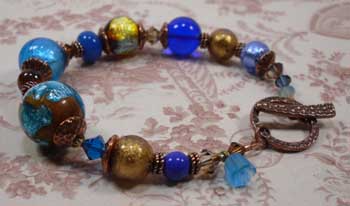 CopperBlue Bracelet; this piece is made from a delve into my bead