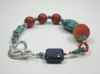 an unusual turquoise and coral double link feature. The bracelet is strung