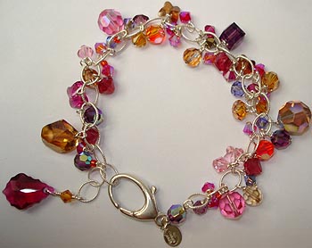 silver with Swarovski crystal dangles, the bracelet moves with the wearer;