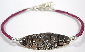 silver tag which says 'All You Need Is Love' - with faceted Ruby finished