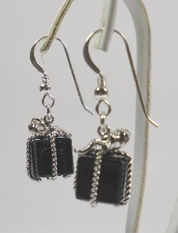 Earrings Black/ Silver – jet black crystal cubes with a wrap of twisted