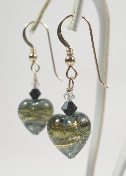 Venetian glass hearts with a 24kt gold band round their middle with Swarovski