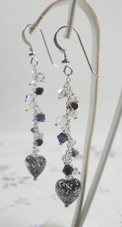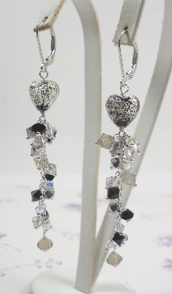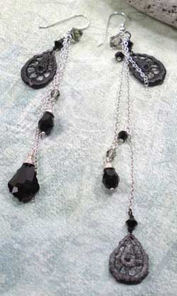 stiffened grey/black guipure lace drops, Swarovski crystal and sterling