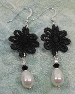 with a Lace and Pearl Earring - stiffened black guipure lace flowers,