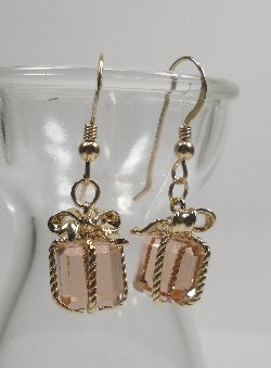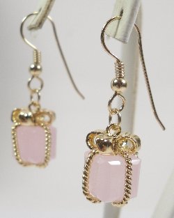 Earrings Rose/ Gold – rose crystal cubes with a wrap of twisted gold
