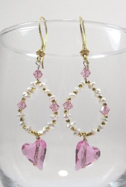 Earrings; very lovely sparkling delicate pink Swarovski crystal hearts