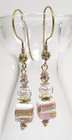 Sorbet Earrings; handmade Venetian glass cubes with stripes of silverfoil,