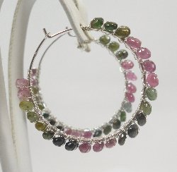 Hoops Earrings; tiny faceted multi-coloured Tourmaline carefully wrapped