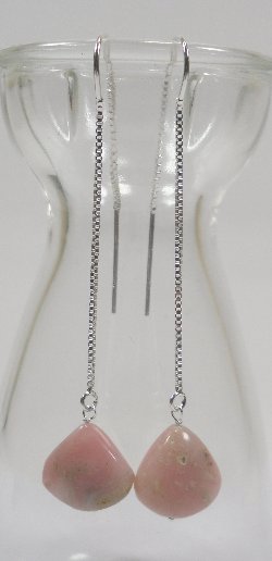 Pink Threader Earrings - made for pierced ears, this stone is Pink