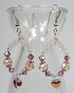 Czech glass hearts and sterling silver. These earrings have a drop of