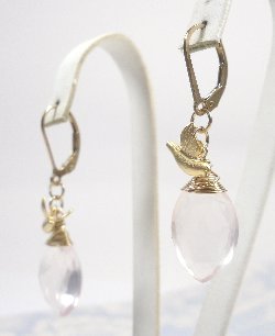 beautiful delicate pink Rose Quartz faceted drops wrapped with goldfilled