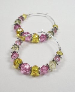 Frutti Hoop Earrings; lovely yellows and roses in Swarosvki crystal