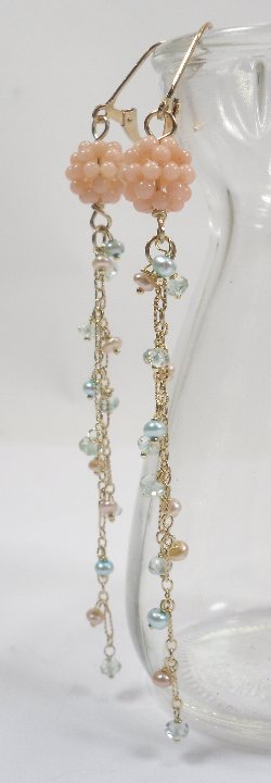 micro faceted aquamarine, peachy and aqua freshwater pearls and the earrings