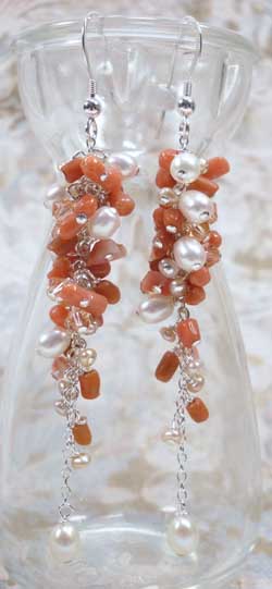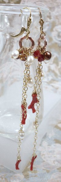 Luxe Earrings; beautiful Italian coral branches, freshwater pearls