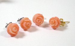 Coral Flowers Earrings; handcarved coral flowers, each one