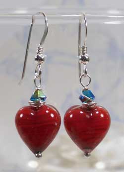 Scarlet Hearts Earrings; passionate red handmade Murano glass with