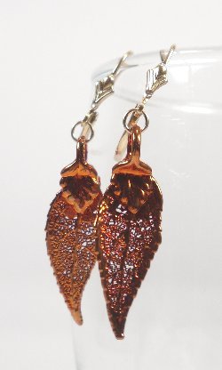 wonderful iridescent copper coated Aspen leaves on a gold-filled earring
