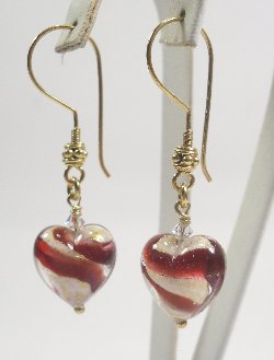 Ripple Earrings; very beautiful handmade Venetian/ Murano glass hearts