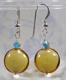 Murano Topaz Lentils Earrings; these lovely beads are made in Venice