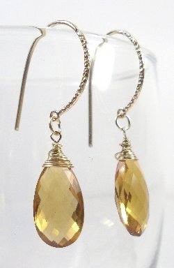 wrapped with gold-fill wire with gold-filled leverback (pierced) earrings.
