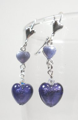 handmade Venetian/ Murano glass hearts with tiny twinkles of Swarovski