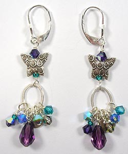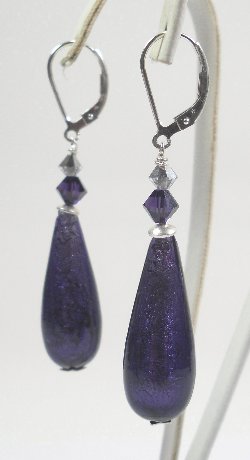 Murano glass drops with Swarovski crystal and sterling silver; the earrings