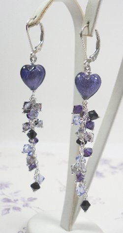Velluto Viola (Purple Velvet) Hearts Earrings; white gold foil lined