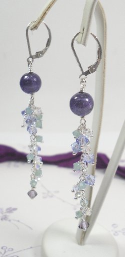 Velluto Viola (Purple Velvet) Drops Earrings; white gold foiled handmade
