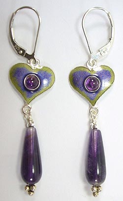 of Amethyst Earrings - beautiful hand-enamelled sterling silver