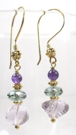 with a most unusual pale amethyst fancy-cut bead, faceted green amethyst