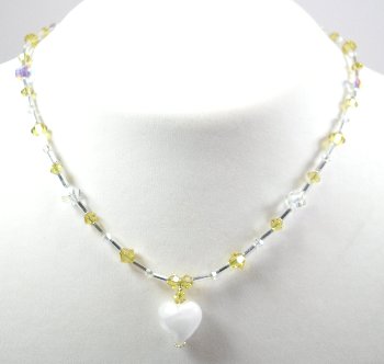 lined bugle beads, this sweet necklace is strung on Beadalon Professional.
