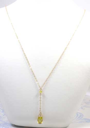 Necklace; a sunshine yellow faceted Zircon drop is wire wrapped with