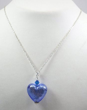 Zaffiro Blu (Sapphire Blue) Heart Necklace; silver lined handmad Murano