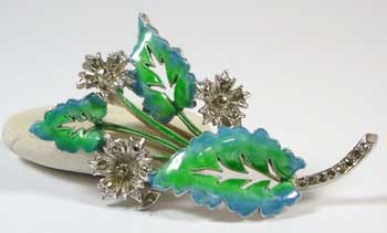 blue-green enamelling set with tiny faceted Marcasite stones. Lovely