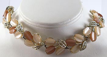 1960's Gold-Caramel Thermoset Moonglow Necklace by Lisner of New