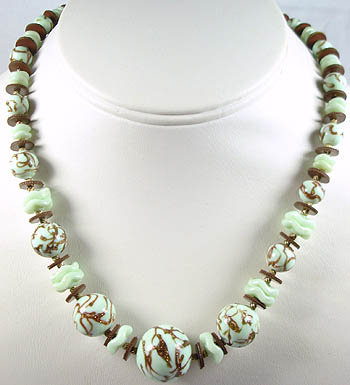 Mint and Gold Aventurine Venetian Glass Bead Necklace; approx. 1920's