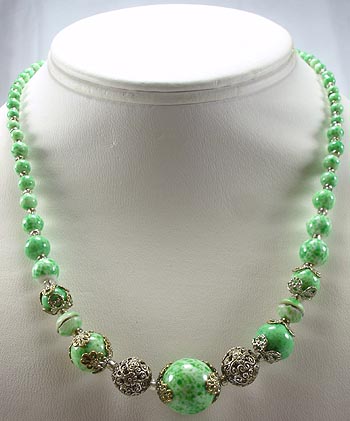 Filigree Necklace; handmade Bohemian speckled beads and their original
