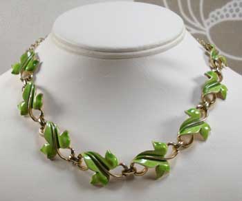 1960's Enamelled Ivy Leaf Link Necklace; in