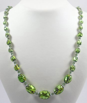 Restrung and Remodelled Bohemian Green Silverfoiled Bead Necklace;