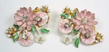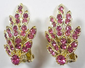 Gorgeous 1950's Pink Crystal Spray Clip Earrings; beautiful and