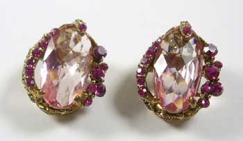 Opulent 1960's Pink Crystal Clip On Earrings;