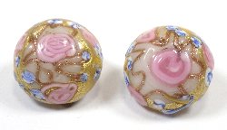 The beads are white overlaid with pink and delicate toffee colour dots,