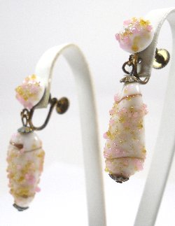 Glass Clip On Earrings - approx. 1950's in date, these unusual beads